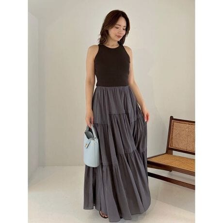 リブニットコンビティアードワンピース