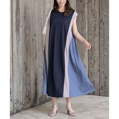 カラーブロックサイドポケットワンピース