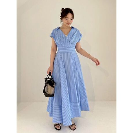 デコルテをきれいに見せるカシュクールデザインに、生地を贅沢に使用したスカート部分、スタイルアップを叶えるハイウエストなど、着るとサマになるディテールにこだわりました。