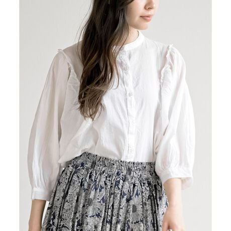 ボリューム7分袖バンドカラーブラウス