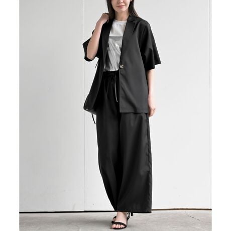 半袖テーラージャケット+ワイドパンツセットアップ