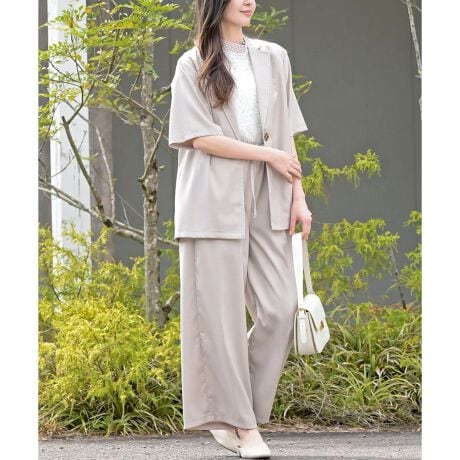 半袖テーラージャケット+ワイドパンツセットアップ