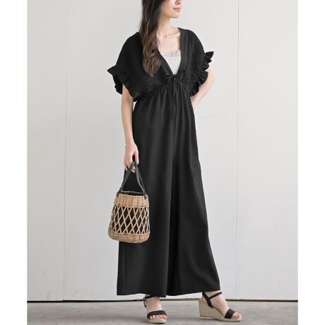 シャーリングフリルロンパース