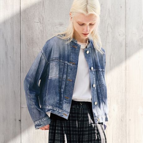 異素材でありながら、視覚的には本格的なデニムの表情を感じさせる、軽やかさと高い表現力を兼ね備えた一着です。