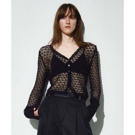 絶妙な透け感とヴィンテージ感のあるレース編地のショート丈カーディガン。