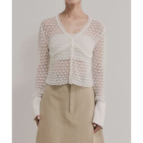 絶妙な透け感とヴィンテージ感のあるレース編地のショート丈カーディガン。