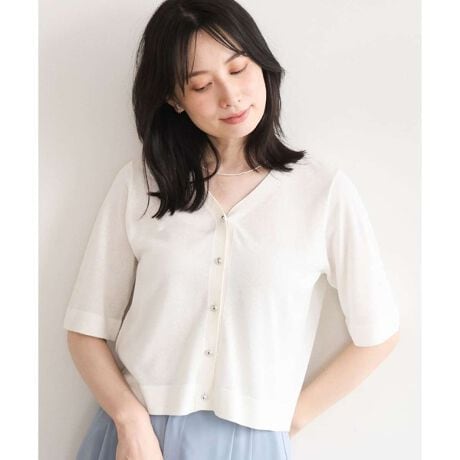 さりげないきらめきが華やぐ 半袖ニットカーディガン