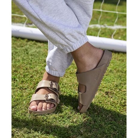 コルクサンダルをイメージしたこのモデルにはEVA素材が使用されています。