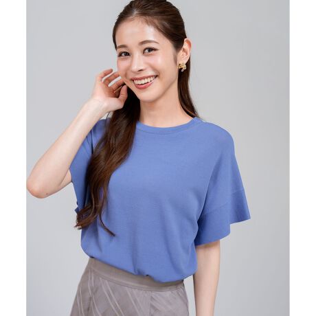 ・袖のフレアデザインがポイントのニットプルオーバー・開きすぎない襟元とゆったりとした身頃で、上品に涼しく着られる一枚・さらっとした天竺編みで、夏でも着やすい軽やかな質感・無地に加え、トレンド感のあるラメ入りマルチボーダーも展開