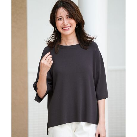・上質なレーヨン混にストレッチ糸を編み込み、ハリ感としなやかさを両立した素材・ひんやりとした、さらっとした肌触りが特徴