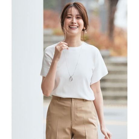 テーパードパンツを合わせれば上品な通勤スタイルに、デニムやワイドパンツで抜け感のある大人カジュアルにもマッチします。前だけ軽くインすると一気にこなれ感出るのでおすすめです。