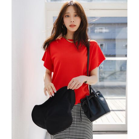 ・袖のフレアデザインがポイントのニットプルオーバー・開きすぎない襟元とゆったりとした身頃で、上品に涼しく着られる一枚・さらっとした天竺編みで、夏でも着やすい軽やかな質感・無地に加え、トレンド感のあるラメ入りマルチボーダーも展開