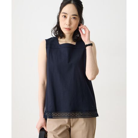 [型番:491261]一枚にもレイヤードにも。夏の着こなしを涼しく快適に夏のお出かけに嬉しい、UVカット&接触冷感機能付きのタンクトップ。首元のスクエアネックが品良く着映え、デコルテラインを美しく魅せます。左裾は刺しゅうでさりげないアクセントを、裾回りにレースをあしらい大人可愛さを添えました。1枚でもトップスと合わせてレイヤードスタイルでも華やかな印象を楽しめるアイテムです。