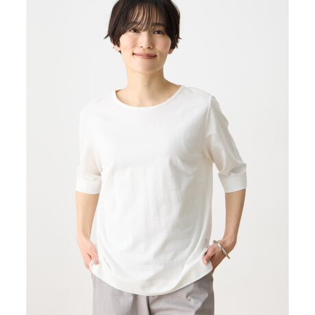 マルイウェブチャネル   /   デコイ   /   トップス   /   Tシャツ・カットソー   /   【ひやさらコットン】ジャガード6分袖Tシャツ【綿100%・接触冷感・UVカット】