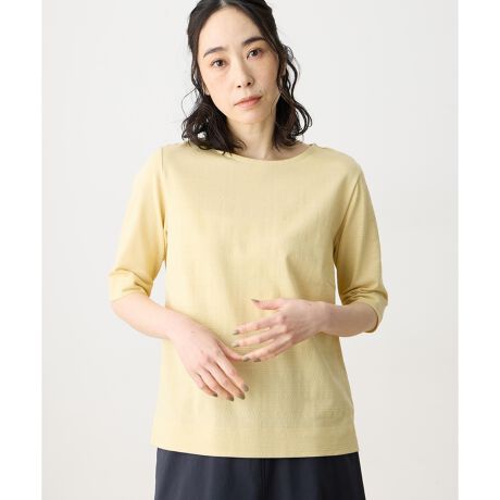 【ひやさらコットン】ジャガード6分袖Tシャツ【綿100%・接触冷感・UVカット】