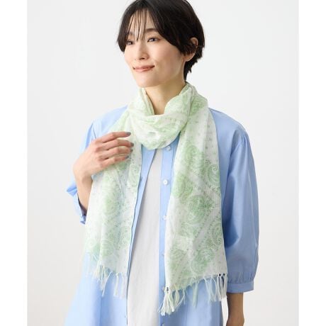 繊細なペイズリー柄が、顔周りを優しく涼やかに彩るストール。