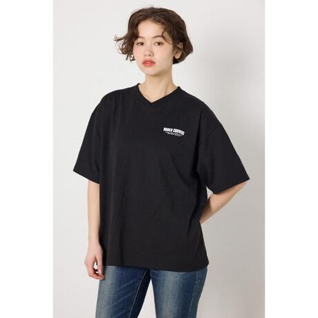 ■ポイントロゴTでありながらカジュアルすぎない、エンボス加工のロゴデザインが大人っぽい印象のTシャツです。BLK以外のカラーはネオンカラーでロゴ入り。BLKは箔プリントでゴールドのロゴがポイントです。■ディテールバックはエンボス加工の上にプリントを重ね、凹凸感のある立体的な仕上がりに。襟元はVネックで抜け感があり、裾はラウンドの仕様になっていて、着るだけで様になるデザインになっています。■スタイリングどんなボトムにも合わせやすいベーシックさと一枚で着映えるデザイン性を兼ね備えたTシャツです。■生地T/C(綿×ポリエステル)の生地にすることで軽くて丈夫な生地の仕上がり。綿部分をOE糸を使用する事でシャリ感(ザラ感)がありさらっとしている生地に。■透け感:あり■裏 地:なし■伸縮性:あり■光沢感:なし※お取り扱い上のご注意・プリント箇所は着用・洗濯によリ白化、剥離する場合があります。・プリント箇所は湿った状態で重ねて放置すると色移りの原因となりますので注意してください。・エンボス加工・箔プリント部分へのアイロンはお避けください。[注意事項]※画像の商品はサンプルです。実際の商品と仕様、加工が若干異なる場合があります。※画像の商品は光の照射や角度、お使いのモニター環境により、実物と色味が異なる場合がございます。※着用、お取り扱いの際は、アテンションタグをご確認ください。