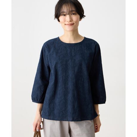 [型番:491270]前身頃と袖を布帛のペイズリー刺しゅう生地で切り替えた、ブラウス見えのプルオーバー。後身頃はUVカット&接触冷感素材のカットソー生地で、真夏でもひんやりと快適に着こなせます。軽やかな素材に8分袖が上品に魅せ、通勤から休日や旅行まで幅広いシーンで活躍します。