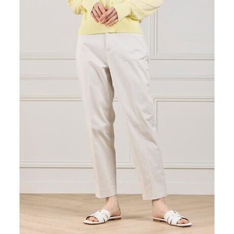 ■デザインセンタープレスやパターンに拘った程良いフィット感ですっきりとした美脚効果を叶えます。身長を選ばないクロップト丈、豊富なサイズ展開でぴったりの一着をお選びいただけます。また、オリジナルのきれいで豊富なカラー展開もポイントです。様々なシーンでご使用いただける、汎用性の高いベーシックパンツです。■素材経糸に毛羽の少ないコンパクト糸を使用した、クリアできれいな表面感が特徴のギャバ素材です。(クラボウ徳島工場の)加工技術による適度な伸縮性が着心地の良さをプラスします。織り・染色・加工共に日本の技術を結集した高級感ある高密度ストレッチ素材です。クリアな表面感によりきれいに表現されたオリジナルのカラーもポイントです。きれいめにもカジュアルにもご使用いただける、汎用性の高いベーシック素材です。・水洗い可・裏地無し・ポケットあり■サンプル撮影商品画像の商品はサンプルです。実際の商品とはサイズや色味、素材、デザイン等の仕様が若干変更になる場合がございます。■照明の関係により、実際の製品とは色味が違って見える場合があります。またパソコン・スマートフォンなどの環境により、若干製品と画像のカラーが異なる場合もございます。■サイズ表記はあくまで目安となります。