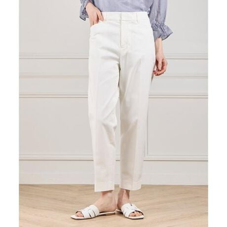 ■デザインセンタープレスやパターンに拘った程良いフィット感ですっきりとした美脚効果を叶えます。身長を選ばないクロップト丈、豊富なサイズ展開でぴったりの一着をお選びいただけます。また、オリジナルのきれいで豊富なカラー展開もポイントです。様々なシーンでご使用いただける、汎用性の高いベーシックパンツです。■素材経糸に毛羽の少ないコンパクト糸を使用した、クリアできれいな表面感が特徴のギャバ素材です。(クラボウ徳島工場の)加工技術による適度な伸縮性が着心地の良さをプラスします。織り・染色・加工共に日本の技術を結集した高級感ある高密度ストレッチ素材です。クリアな表面感によりきれいに表現されたオリジナルのカラーもポイントです。きれいめにもカジュアルにもご使用いただける、汎用性の高いベーシック素材です。・水洗い可・裏地無し・ポケットあり■サンプル撮影商品画像の商品はサンプルです。実際の商品とはサイズや色味、素材、デザイン等の仕様が若干変更になる場合がございます。■照明の関係により、実際の製品とは色味が違って見える場合があります。またパソコン・スマートフォンなどの環境により、若干製品と画像のカラーが異なる場合もございます。■サイズ表記はあくまで目安となります。