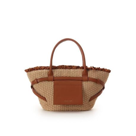 ◇Samantha Thavasa(サマンサタバサ)のフロントポケットかごバッグフロントについた大きめのポケットがポイントのかごバッグ。【デザイン】扇形のお洒落なシルエットにフリルを口元につけた華やかさなデザイン。バッグを囲うようなベルトデザインが立体感を演出します。内装はざっくりと収納ができ、口元にはマグネットがついているので移動時にも安心です。カジュアルコーデから綺麗めなコーデまで幅広いコーディネートに合わせられるアイテムです。【サイズ感】A4サイズ…×、長財布…〇、500mlボトル…〇