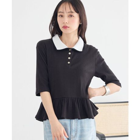 立体感のあるダブル衿デザインが顔まわりを華やかに見せ、上品な印象を与えるプルオーバーです。ウエストから広がるペプラムシルエットが女性らしいラインを引き立て、自然にスタイルアップを叶えます。ランダムリブ素材が程よく体にフィットし、すっきりとした着こなしを演出します。メタルボタンがさりげないアクセントとなり、シンプルな中にも洗練された雰囲気をプラスします。ハーフスリーブで軽やかに着られ、デイリーからお出かけまで幅広く活躍する一着です。