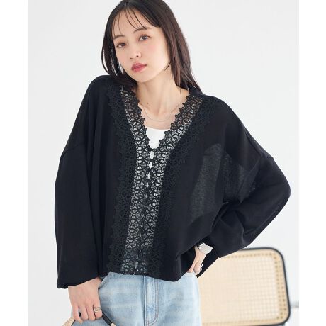 繊細なレーストリムが印象的な、上品で大人可愛い雰囲気を演出するシアーニットです。軽やかでほんのり透け感のある素材が、涼しげで季節感のある着こなしを叶えます。前後2way仕様なので、ボタンを前にしてカーディガンとしても、後ろにしてプルオーバー風にも着用でき、スタイリングの幅が広がります。接触冷感とUVカット機能を備えているため、暑い日でも快適に過ごしながら紫外線対策も可能です。ワンピースやデニム、スカートなど様々なアイテムと相性が良く、オンオフ問わず活躍する万能アイテムです。