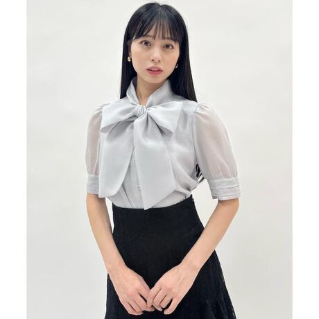 ピンタックカフスリボンタイブラウス
