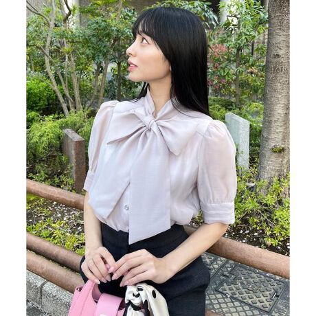 大きなリボンタイで上品な甘さを添えるブラウス【Design】・大きなリボンタイが上品でクラシカルな印象のブラウス。・ピンタックがデザインされたボリューム感のあるお袖がふんわりとした女性らしいシルエットに仕上げます。・身頃にはカット素材の裏地を施し、安心感のある着心地に◎・袖は裏地なしで程よい透け感が軽やかな印象をプラス♪・カフスデザインが手元にさりげないアクセントを添えます!・フロントボタン仕様。【Fabric】・やわらかな風合いで、軽やかに着られるブラウス素材を使用。・さらっとした肌触りで、これからの季節にも快適な着心地です。・ホワイト、ピンク、ブルーの3色展開となります。【Care】ドライクリーニング