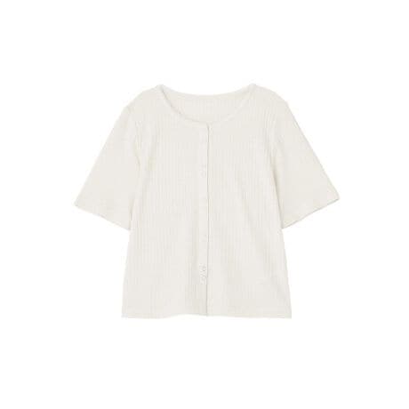 ラメとフリルで華やぐ、大人フェミニンな一枚繊細なラメのきらめきと、リブ素材のすっきりとしたシルエットが魅力のカットソーです。ほどよいフィット感で着心地がよく、体のラインをきれいに見せてくれます。さりげないチェーン風のディテールとプチフリルがアクセントになり、大人可愛い雰囲気を演出します。スナップボタン付きで着脱しやすく、実用性とデザイン性を兼ね備えているのもポイントです。パンツにもスカートにも合わせやすく、コーディネートに華やかさを添えてくれる万能なアイテムです。透け感[なし]