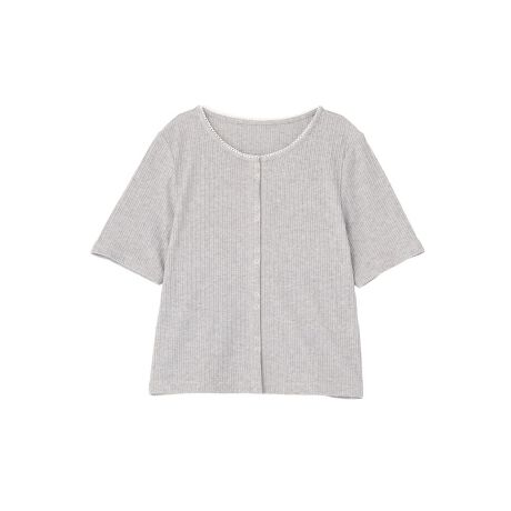 繊細なラメのきらめきと、リブ素材のすっきりとしたシルエットが魅力のカットソーです。ほどよいフィット感で着心地がよく、体のラインをきれいに見せてくれます。さりげないチェーン風のディテールとプチフリルがアクセントになり、大人可愛い雰囲気を演出します。スナップボタン付きで着脱しやすく、実用性とデザイン性を兼ね備えているのもポイントです。パンツにもスカートにも合わせやすく、コーディネートに華やかさを添えてくれる万能なアイテムです。