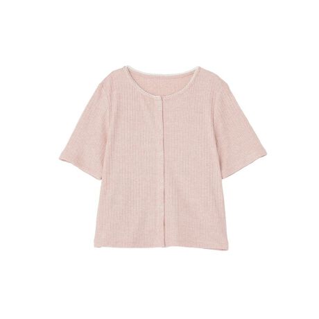 繊細なラメのきらめきと、リブ素材のすっきりとしたシルエットが魅力のカットソーです。ほどよいフィット感で着心地がよく、体のラインをきれいに見せてくれます。さりげないチェーン風のディテールとプチフリルがアクセントになり、大人可愛い雰囲気を演出します。スナップボタン付きで着脱しやすく、実用性とデザイン性を兼ね備えているのもポイントです。パンツにもスカートにも合わせやすく、コーディネートに華やかさを添えてくれる万能なアイテムです。