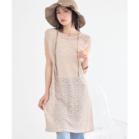 軽やかな透け感のあるレースが、涼しげで大人可愛い雰囲気を演出します。バックギャザーが生み出す立体感のあるシルエットは、動きに合わせてやさしく揺れ、自然と華やかな印象に導いてくれます。前後どちらでも着用できる2way仕様で、スタイリングの幅が広がり着回し力も抜群です。バックリボンのデザインが後ろ姿にさりげないアクセントをプラスし、どの角度から見ても魅力的に見せてくれます。インナーを合わせたレイヤードコーデが簡単に決まり、日常使いに取り入れやすい一枚です。