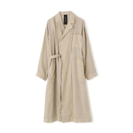 切りっぱなしデザインと太番手のステッチがポイントのトレンチコート。