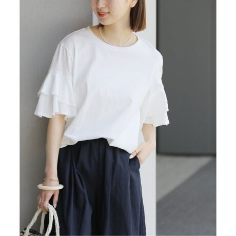 ◆一枚で着映える、大人可愛いフリルスリーブTシャツ