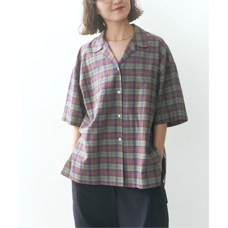 インディアンマドラスを使用した、風合い豊かなハーフスリーブシャツ。ナチュラルな色合いやムラ感が魅力で、製品洗いでさらに柔らかな表情に仕上げています。