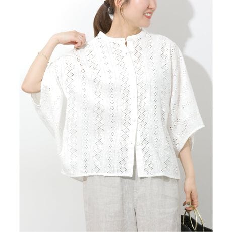 コットンカットワーク刺繍開襟シャツ(品番:26050462112020)