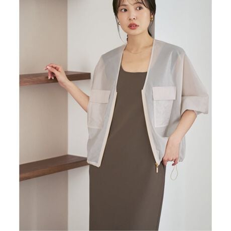 ゴールドジップや上品なシアー素材のエレガントな要素と、ポケットや切り替えでワーク要素を融合させた他にないデザインのライトアウターはさらっと羽織るだけでキレイめカジュアルな印象に決めてくれます。