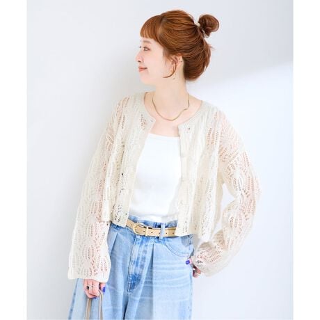透かしレース編みの軽やかに羽織れるショート丈カーディガン。