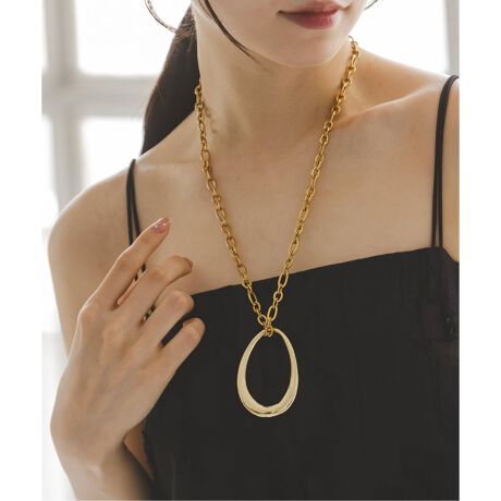 楕円の柔らかいラインのトップに大ぶりなチェーンが力強さと華やかさをプラスしてくれます。