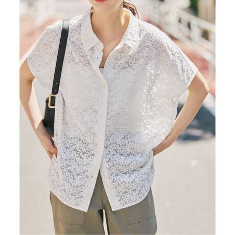 繊細な表情としなやかな風合いが魅力のレース素材を使用したシャツ。