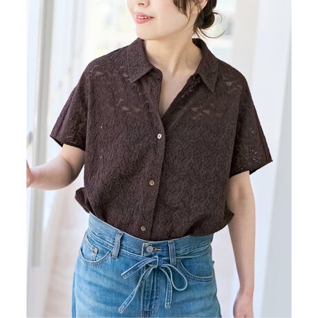 繊細な表情としなやかな風合いが魅力のレース素材を使用したシャツ。