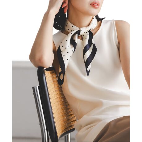上質なシルクに素材に遊び心あるドット柄を載せたスカーフ。