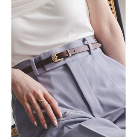 やや細身のフォルムとゴールドの丸みを帯びたバックルが特徴の、よりスタイリングを洗練させてくれるアイテム。
