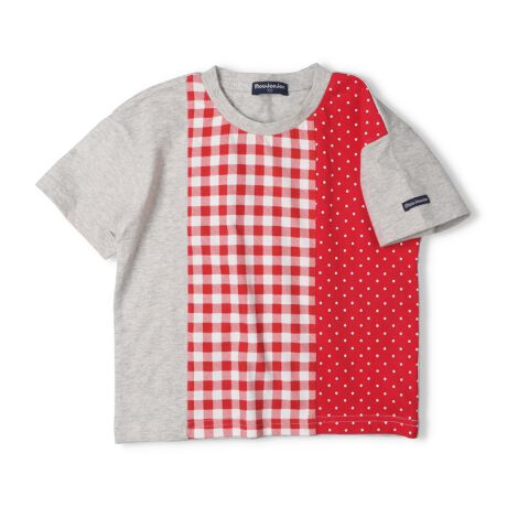 前身頃が天竺、Tシャツにギンガムチェック、水玉プリントの切替デザインの半袖Tシャツ。女の子のTシャツ(M46800)と水玉柄がリンクしてお揃いっぽく着られるようになっています!【アイテム】トップス カジュアル お洒落 オシャレ かっこいい かわいい 可愛い 普段着 デイリーウェア お出かけ着 お外着 お外遊び着 子ども服 こども服 男児 男の子 ボーイズ キッズ ベビーサイズ トドラーサイズ 幼稚園 保育園 小学校 通園 通学 小学生 2026年春夏物新作 丸高衣料 コットン100% 綿100% ホワイト 白色 ブルー 青色 レッド 赤色 グレー 灰色 ムージョンジョン