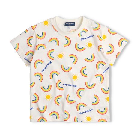 税込み990円の『む〜らくぎ』シリーズ。総柄のTシャツとハーフパンツ(M37107)をセットアップで着たり、別々に着たり。お外でもお部屋でも!ホワイトはカラフルな虹柄、エメラルドグリーンは夏らしい海の総柄。綿100%でギフトやプレゼントにもオススメ!【アイテム】トップス カジュアル お洒落 オシャレ かっこいい かわいい 可愛い 普段着 デイリーウェア お出かけ着 お外着 お外遊び着 子ども服 こども服 男児 男の子 ボーイズ キッズ ベビーサイズ トドラーサイズ 幼稚園 保育園 小学校 通園 通学 小学生 2026年春夏物新作 丸高衣料 コットン100% 綿100% 白色 緑色 レインボー サメ お魚 クラゲ 亀 いるか イルカ シャーク ムージョンジョン