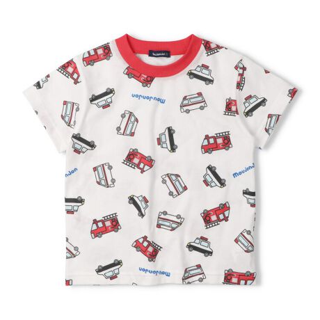 安心の【日本製】で、ギフトやプレゼントにもオススメ!男の子に人気の消防車、救急車、パトカーの総柄が可愛い!綿100%でデイリー使いにもオススメ!【アイテム】トップス カジュアル お洒落 オシャレ かっこいい かわいい 可愛い 普段着 デイリーウェア お出かけ着 お外着 お外遊び着 子ども服 こども服 男児 男の子 ボーイズ キッズ ベビーサイズ トドラーサイズ 幼稚園 保育園 小学校 通園 通学 小学生 2026年春夏物新作 丸高衣料 ホワイト 白色 ムージョンジョン コットン100% 綿100% made in Japan メイドインジャパン 国内生産