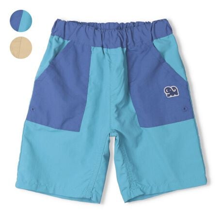 アウトドアや水遊びなどにオススメな水をはじきやすい、撥水加工の水陸両用ハーフパンツ。さらっとしたナイロン素材。膝丈5分丈。前ポケット部分にぞうのワッペンが付いているのもポイント!(水着としての使用はお避け下さい。)【アイテム】シンプル ベーシック 無地 カジュアル お洒落 オシャレ かっこいい かわいい 可愛い 普段着 お外着 お外遊び着 デイリーウェア お出かけ着 ハーフパンツ 短パン 半パン 半ズボン ボトムス 子ども こども 男児 男の子 ボーイズ キッズ ベビーサイズ トドラーサイズ 幼稚園 保育園 小学校 通園 通学 小学生 2026年春夏物新作 丸高衣料 ブルー 青色 水色 ベージュ ゾウ 動物 アニマル ムージョンジョン