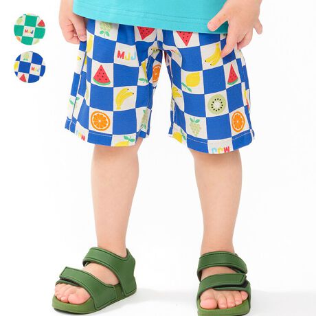 フルーツチェック総柄プリペラ5分丈ハーフパンツ