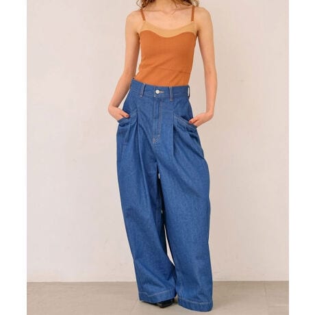 同素材のデニムビスチェと合わせのコーデでオールインワンの様にも着れます。
